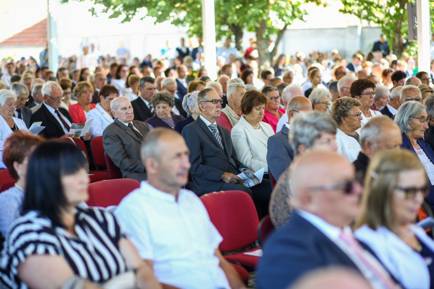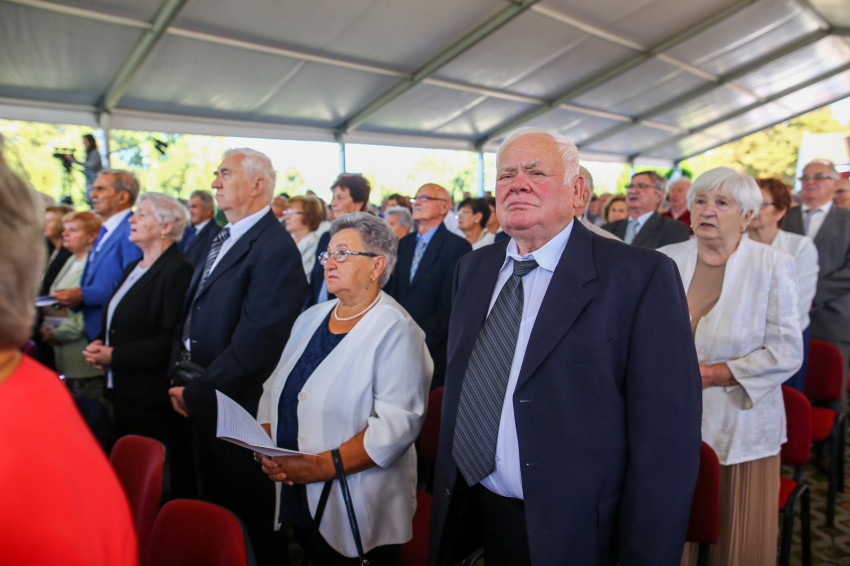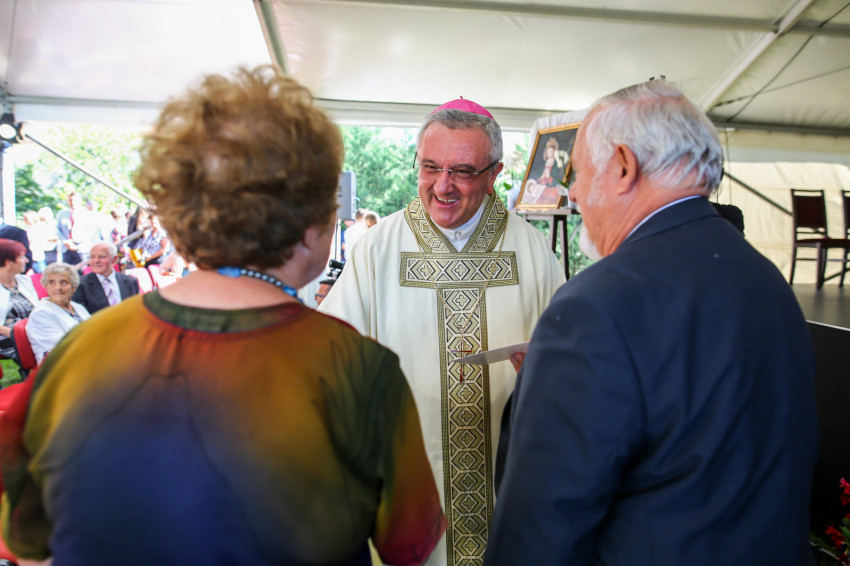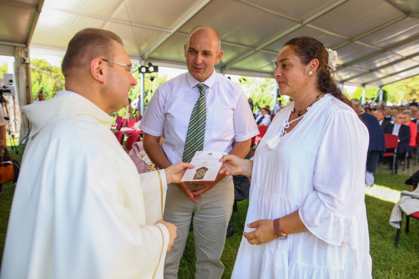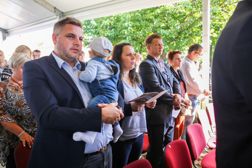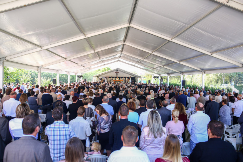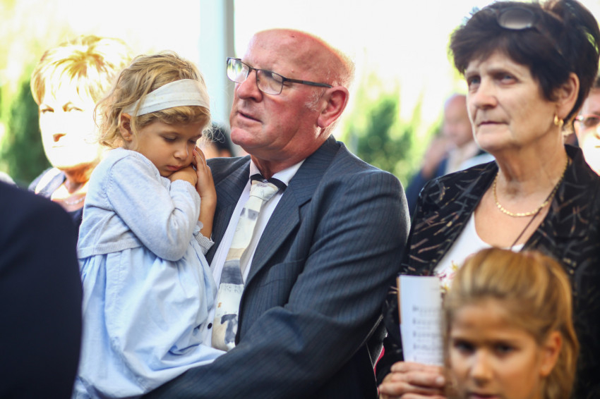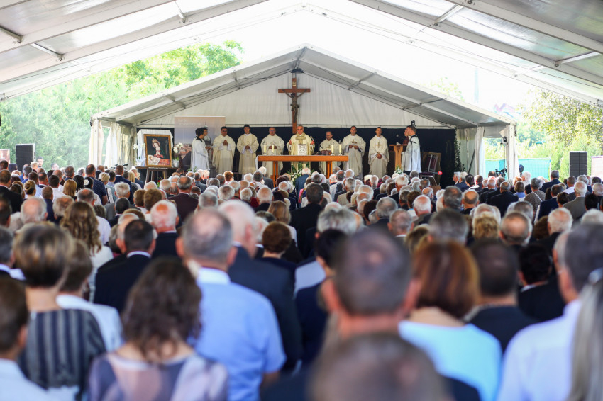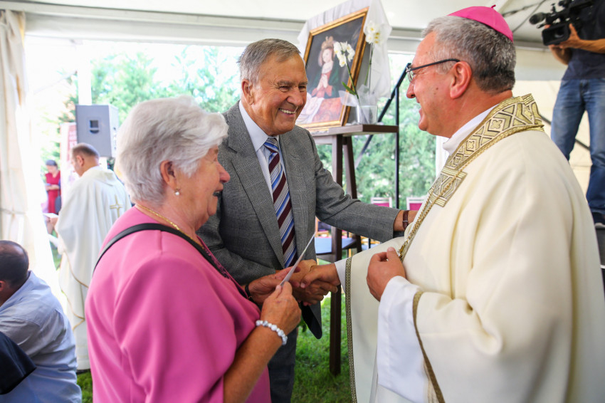 740 ember ül a győri Püspökvár kertjében felállított sátor alatt. 370 házaspár, akik az 5., 10., 15., vagy éppen 70. évfordulójukat ünneplik. A sátor körül elhelyezett padokon hozzátartozóik, nagyszülők, gyerekek, unokák népes serege. Ünneplőben minden – a kék égen ragyog a nap, az utóbbi napok esőzéseinek köszönhetően friss zöldben virul az igényesen gondozott, rendhagyó kert a gyümölcsfákkal, zöldségültetvénnyel.