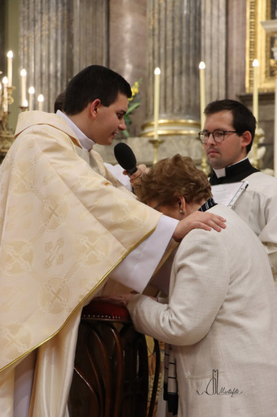 Erről beszélt a Teréz-templom plébánosa is, Horváth Zoltán István kanonok, esperes, az újmise szónoka, aki több mint tíz éve kíséri az újmisés lelki fejlődését, alakulását.