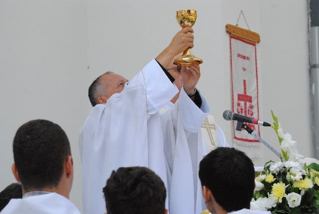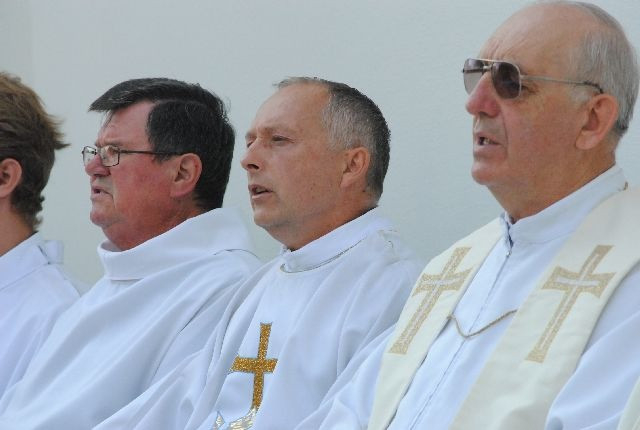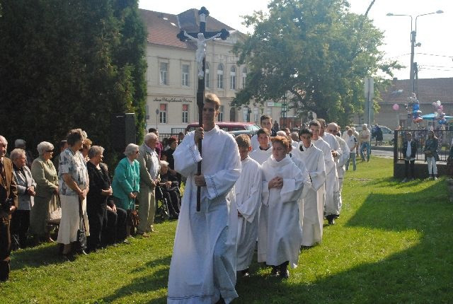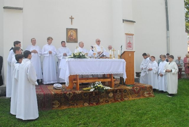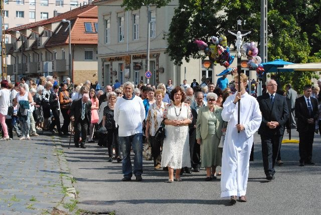 A búcsúi szentmisét a templomkertben felállított szabadtéri oltárnál tartották: számos hívő ünnepelt együtt a diósgyőri közösséggel, köztük Kriza Ákos, Miskolc polgármestere és több önkormányzati képviselő is.