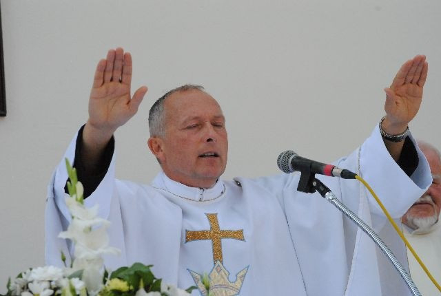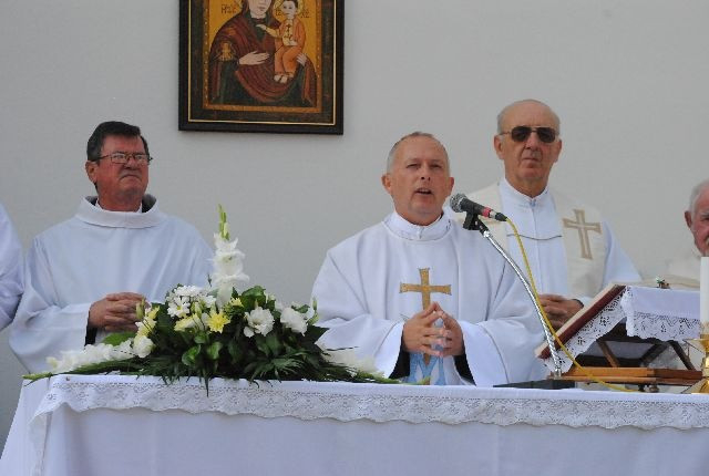 Maksó Péter szentbeszédében a búcsú jelentéséről és a fatimai jelenések századik évfordulója kapcsán a rózsafüzér-imádság erejéről és fontosságáról beszélt. A szentmise és a körmenet után újmisés áldást adott a nagy melegben is kitartó résztvevőkre.