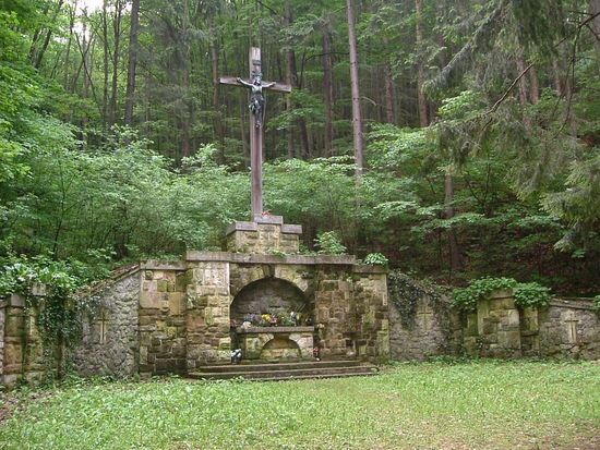 A feszület és a tábori oltár az 1920-as években épült, itt ért véget a lillafüredi Mária-sétány. Az eredeti, észak-spanyolországi kegyhely Lourdes-hoz hasonló, itt is gyógyulások és csodák történtek.