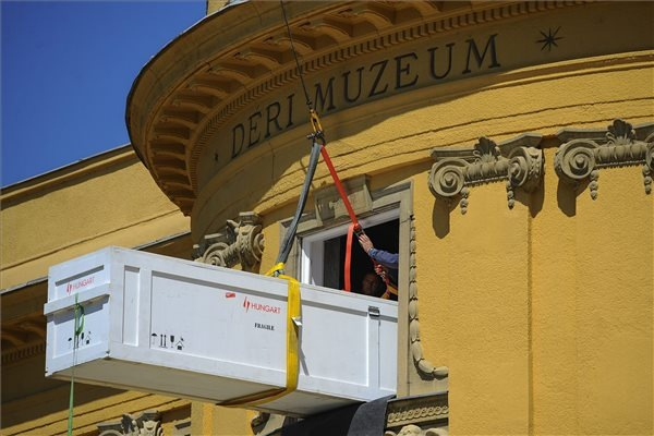 A nagyméretű alkotást a kupolán keresztül daruval emelték be a Déri Múzeumba kedden délelőtt. Fodor Éva Irén, a Déri Múzeum művészettörténésze az MTI érdeklődésére közölte: a képet a beemelés után letekerik a hengerről és két napig pihentetik, hogy akklimatizálódjon, mivel a tavaly júliusi elszállítása óta nem volt kiemelve a ládából. Ezt követően vakkeretre feszítik, ekkor derül ki, kell-e restaurátori beavatkozás, majd a díszkeretbe helyezve felkerül arra a falra, amely tavaly óta üresen várta a múzeum Munkácsy-termében a kép visszatérését.