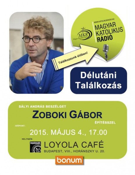 A Délutáni találkozás című műsor nyilvános felvétele május 4-én délután 5 órakor lesz a Loyola Caféban (Budapest, VIII. kerület, Horánszky utca 20.).