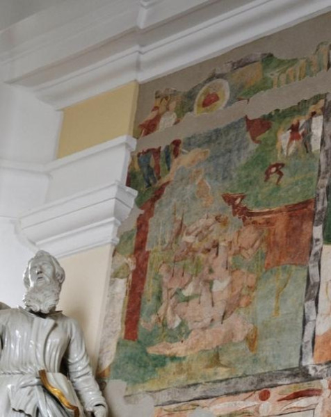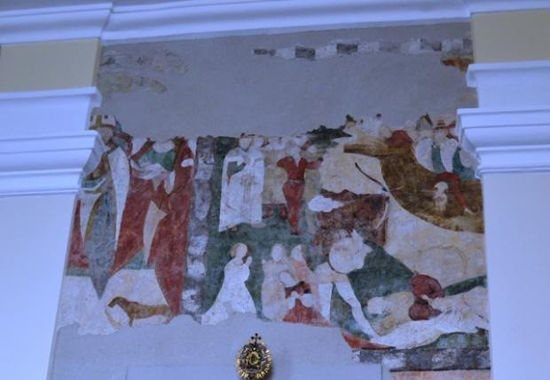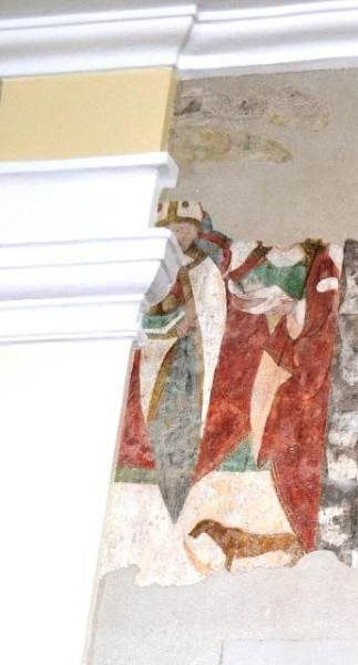 A felújítási munkálatok során a szentélyben késő gótikus falképet tártak fel, mely a secco technikával a 15. század második felében, legkésőbb a 16. század elején készült. A falfestmény renoválását Kiss Lóránd restaurátor vezette, aki elmondta, hogy a szentély felső regiszterében balról jobbra haladva a Szent Ákos által vezetett tízezer vértanú katona kivégzésének jelenete látható Örményországban, az Ararát hegyen, akiket Hadrianus császár keresztre feszíttetett kereszténységük miatt. A freskón Szent Miklós püspök és Szent Bálint alakja is felismerhető.