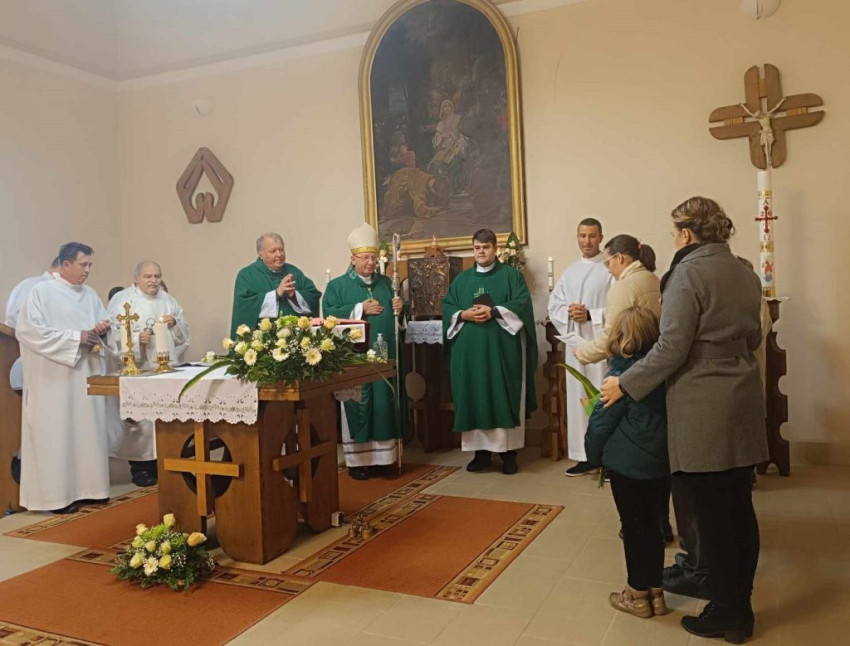 A szentmise kezdetén a gyermekek verset mondtak a templomról, majd Ferge Jánosné, az egyházközség világi elnöke köszöntötte a főpásztort. Ezt követte a harangberendezés megáldása, majd az ünnepi szentmise.