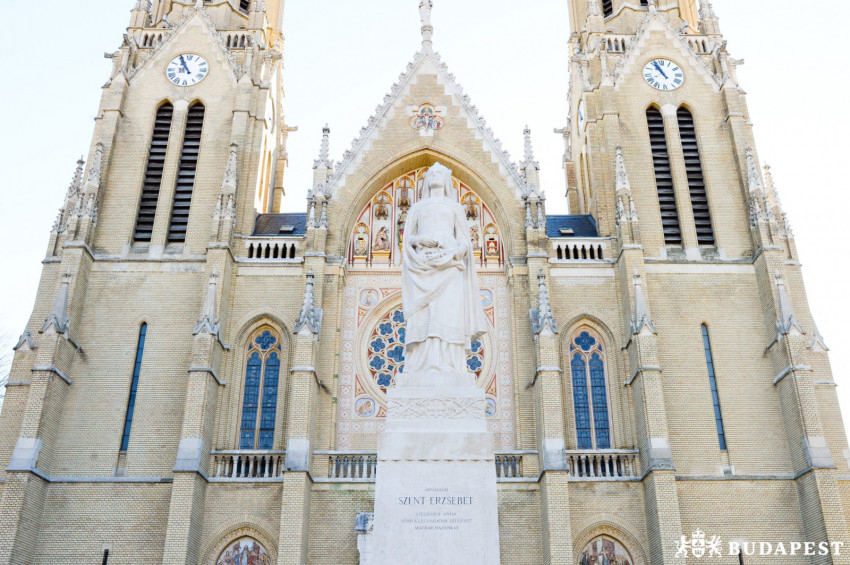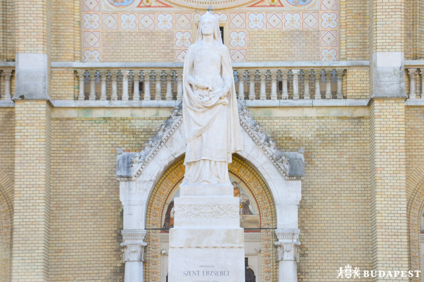 Szent Erzsébet Rózsák terén álló szobrát 1932. augusztus 31-én avatták fel. A talapzat emléktáblája szerint „Budapest Székesfőváros közönsége”, illetve a Szent Erzsébet Egyházközség állíttatták 1931-ben, Szent Erzsébet halálának 700. évfordulója alkalmából.