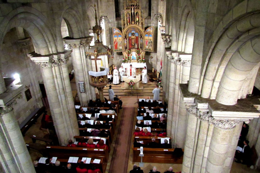 A száz tagot számláló összkar a lébényi templomban lélekemelő módon elevenítette fel Ferenc pápa budapesti zárómiséjét.