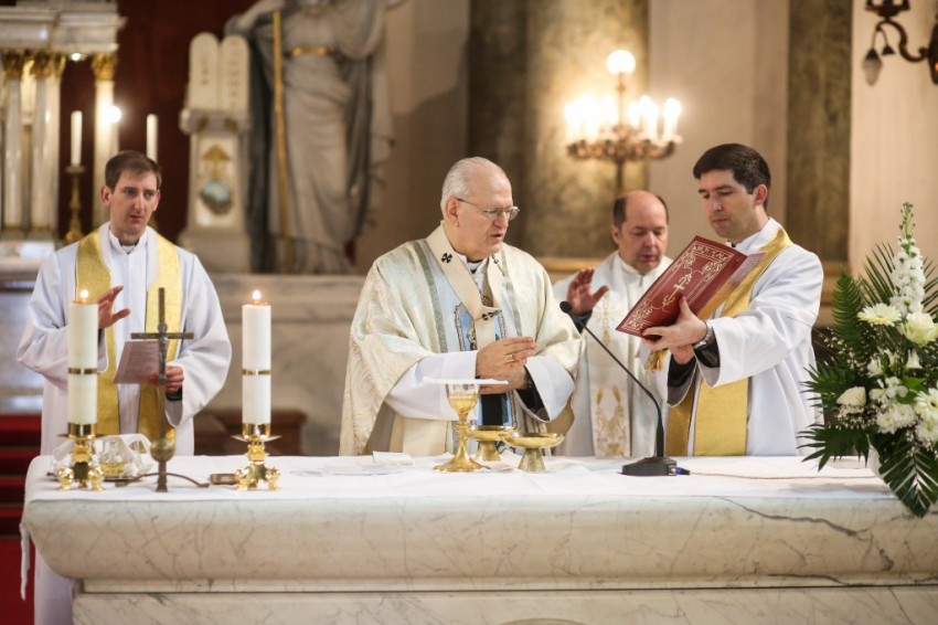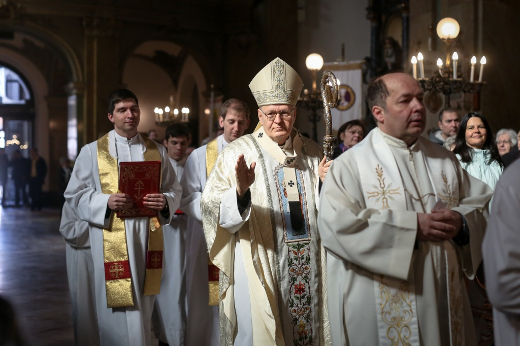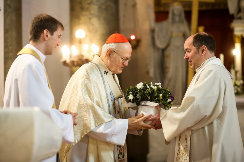 A főpásztor egy nagysikerű lelkipásztori könyvet ajánlott a jelenlévők figyelmébe, melyet már hasonlóképp javasolt a papoknak, sőt az összes egyházközség világi vezetőjének is. Címe: Újraépítve. Erdő Péter bíboros kiemelte: nem csak a külső feltételeket, hanem a lelkünket, magatartásunkat, az egész közösségi életünket újra kell építeni. A plébánia missziós közösség – küldetésünk van a körülöttünk lévő világgal szemben. Olyannak kell lennünk, hogy felkeltsük mások figyelmét, meg kell hívnunk őket. Ha pedig idejönnek a templomba, a plébániai közösségbe, akkor olyan élménnyel kell találkozniuk, amely megragadja őket, arra biztatja mindannyiukat, hogy itt maradjanak, illeszkedjenek be a közösségbe. Mindehhez tehát kérjük idén Szent József segítségét, pártfogását és a Szentlélek világosságát – mondta köszöntője végén Erdő Péter bíboros.