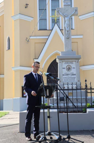 Latorcai Csaba kitért arra is, az elmúlt másfél évtized során a községben számos beruházás valósult meg, amelyhez hozzájárult a helyi polgárok önkéntes munkája is. A kormány célja, hogy kistelepülésen élni ne életminőségek közötti különbséget, hanem életstílus melletti választást jelentsen. A vidék népszerűségének és megtartó erejének növeléséhez versenyképes, megélhetést biztosító, helyben elérhető munkahelyekre és magas életszínvonalat nyújtó szolgáltatásokra van szükség – hangsúlyozta a területfejlesztési parlamenti államtitkári posztot is betöltő kereszténydemokrata politikus. „Állítsunk minél több keresztet a békéért” – fejezte be beszédét.