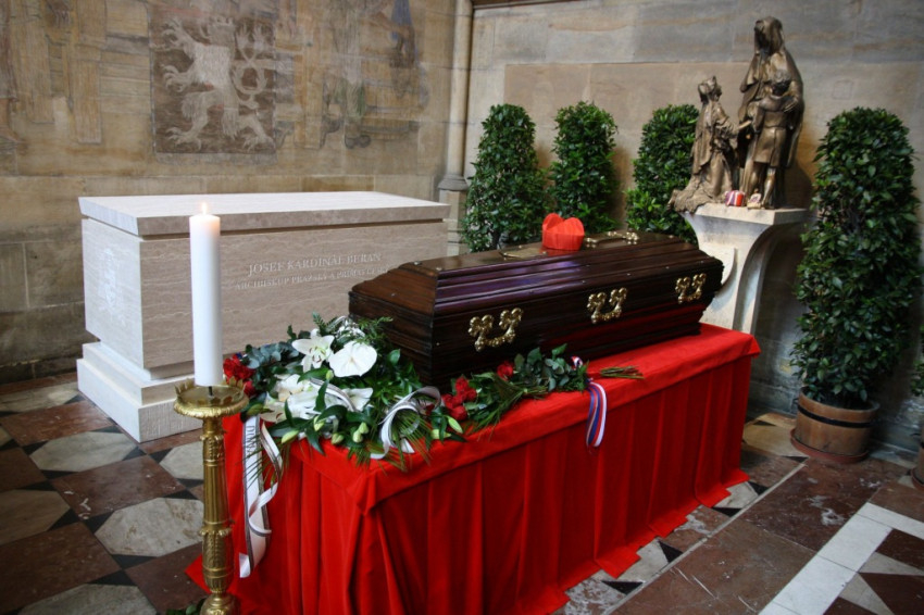 Az 1969-ben Rómában elhunyt Josef Beran koporsója előtt az emberek három napon keresztül róhatták le kegyeletüket. Hétfőn este az ünnepi gyászmise után a koporsót egy szarkofágba tették, amelyet a Szent Vitus-székesegyház Szent Ágnes-kápolnájában helyeznek el.