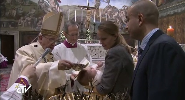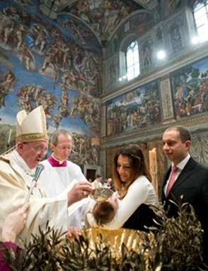 A mai bibliai olvasmányokból egy másik szempont is erőteljesen kidomborodik: a keresztségben a Szentlélek szentel meg bennünket. A „keresztény” szó ezt jelenti: fel vagyunk szentelve, mint Jézus ugyanabban a Szentlélekben, amelybe Jézus merült el egész földi léte során. Ő a „Krisztus”, a felkent, a felszentelt, mi, megkereszteltek „keresztények”, vagyis megszenteltek, felkentek vagyunk. Tehát kedves szülők, kedves keresztapák és keresztanyák, ha azt akarjátok, hogy gyermekeitek valóban keresztényekké váljanak, segítsétek őket, hogy a Szentlélekbe elmerülve növekedjenek, vagyis Isten szeretetének a melegében, Szava világosságában. Ezért ne feledkezzetek meg arról, hogy gyakran, mindennap fohászkodjatok a Szentlélekhez – mondta a pápa, majd képzeletbeli beszélgetést rögtönzött homílájában: „–Ön imádkozik, Asszonyom? – Igen! – Kihez imádkozik? – Istenhez imádkozom. – De Isten nem így létezik: Isten egy személy, mivel személyként Atya, Fiú és Szentlélek. – Te kihez imádkozol? Az Atyához, a Fiúhoz, vagy a Szentlélekhez?” Általában Jézushoz imádkozunk, amikor pedig a Miatyánkot mondjuk, az Atyához imádkozunk. De a Szentlélekhez nem annyira imádkozunk... Nagyon fontos, hogy imádkozzunk a Szentlélekhez, hogy tanítsa meg, hogyan vezessük a családot, a gyermekeket, hogy ezek a gyermekek a Szentháromság légkörében növekedjenek. Éppen a Szentlélek az, aki előbbre viszi őket. Ezért ne feledkezzetek el gyakran, mindennap fohászkodni a Szentlélekhez” – mondta a pápa, majd így folytatta: „Ezt megtehetitek például ezzel az egyszerű imával: „Jöjj, Szentlélek, töltsd el híveid szívét és lobbantsd lángra bennük szereteted tüzét!” Imádkozhatjátok ezt gyermekeitekért, azon túl természetesen saját magatokért is!
