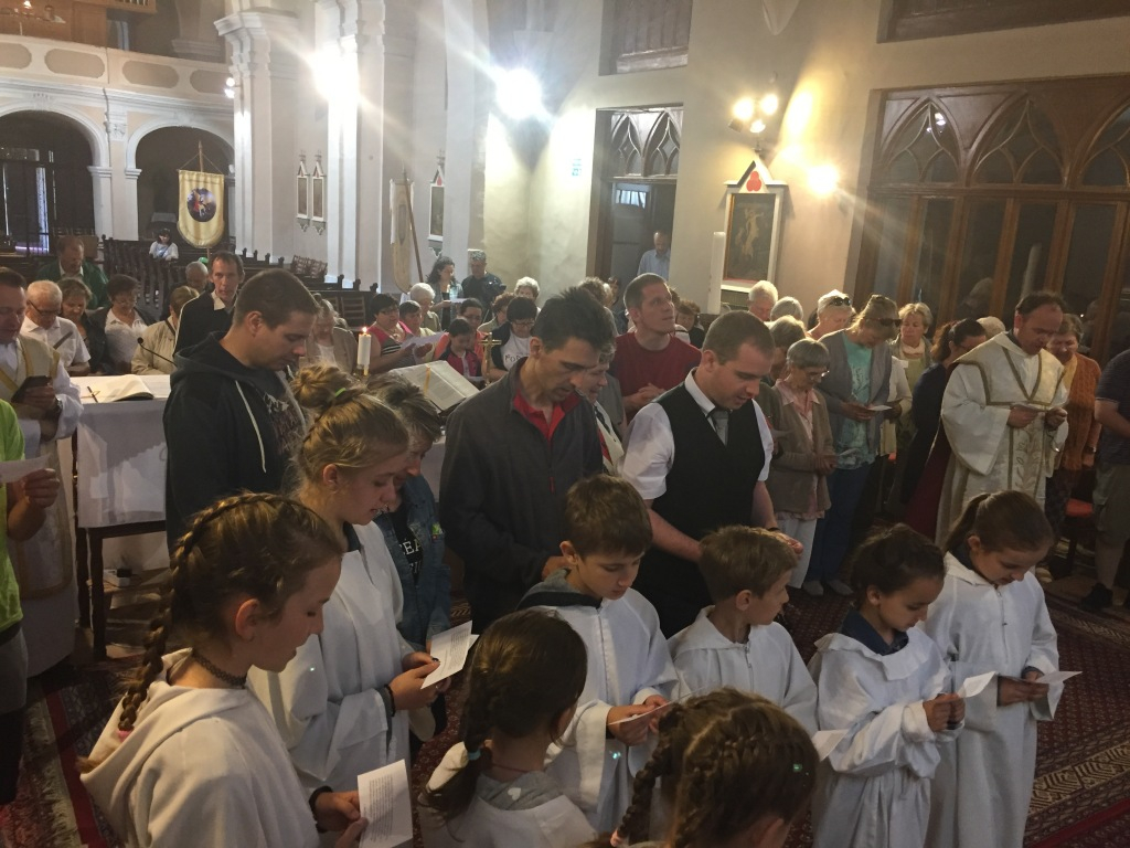 Mielőtt az angyalföldi csoport továbbindult volna, a két plébánia hívei a templomba mentek, és – május hónap lévén – együtt köszöntötték a Szűzanyát a loretói litánia szavaival.
