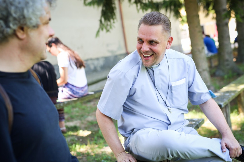 – Hasonló kérdésekkel, vágyakkal érkező fiatalok találnak egymásra itt, „a világ végén” – mondja Robi atya már odakint, amikor leülünk beszélgetni. – Sok új vendég van idén, és több a tizenéves vagy húszas évei elején járó, mint korábban. Önmagukat, közösséget, Istent keresik. Huszonegyedik alkalommal vagyunk itt. A Nyolc Boldogság közösség lelkiségének megfelelően az Eucharisztia ünneplését helyezzük a középpontba: minden délben misére gyűlünk össze, és mindig nagyon szépen misézünk. Fontosnak tartjuk ugyanis, hogy nagy szépséget tapasztaljanak meg nálunk a táborozók, és a szépben meglássák Istent.