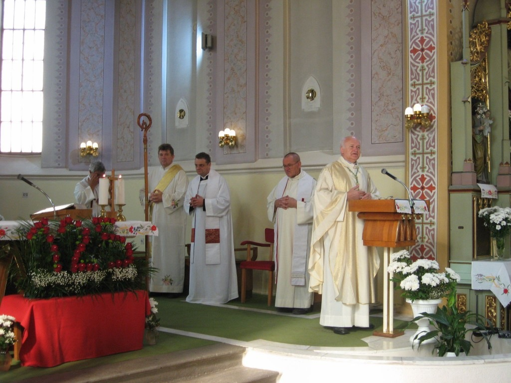 Szeptember 13-án, vasárnap Német László nagybecskereki megyéspüspök misézett, aki szentbeszédében kiemelte, hogy valójában hármas ünnep van Muzslyán ebben az évben. A falu 125 éves, a szalézi rend alapítója, Don Bosco 200 éve született, ami azért is fontos, mert a muzslyai plébánián – éppen ötven éve – tevékenykednek a szalézi atyák. A főpásztor külön köszönetet mondott a helybeli papoknak, a plébánosnak, az aktív plébániai életért, mert a muzslyai a legaktívabb közösség a Nagybecskereki Egyházmegye területén.