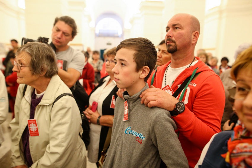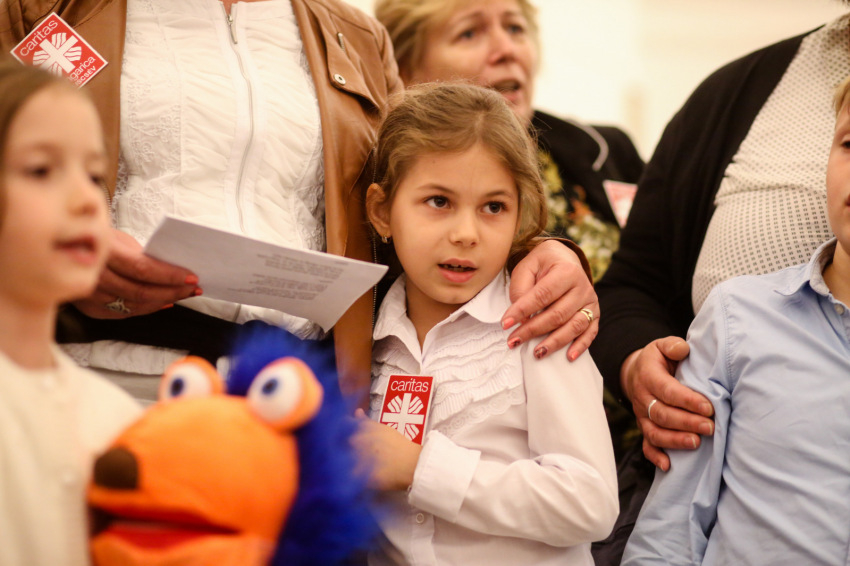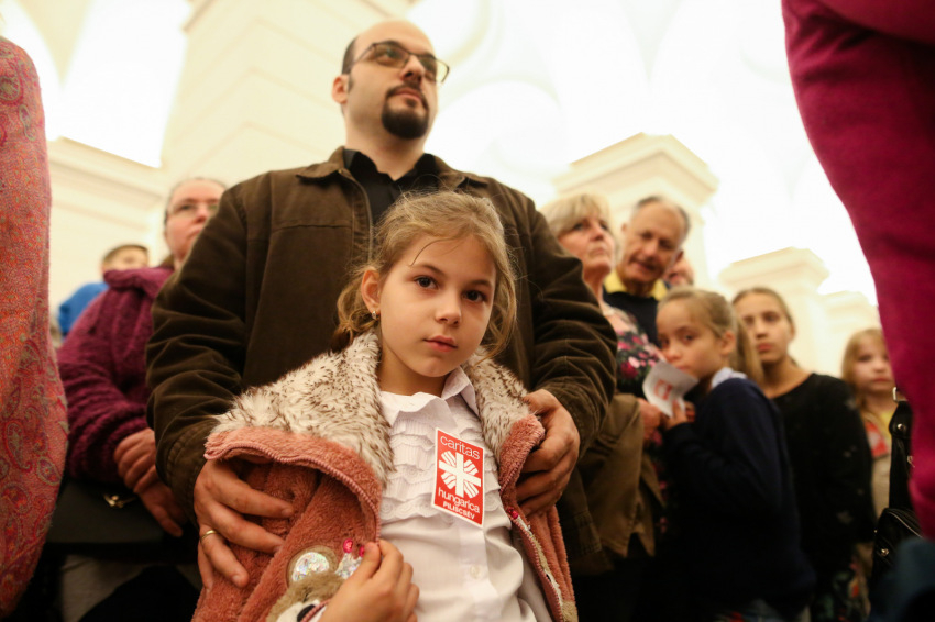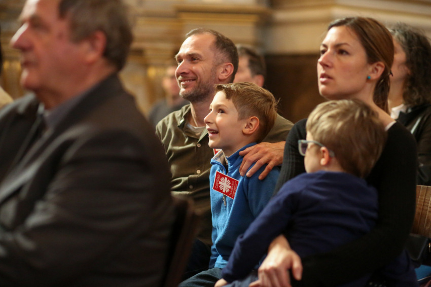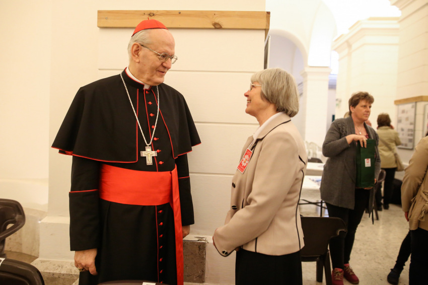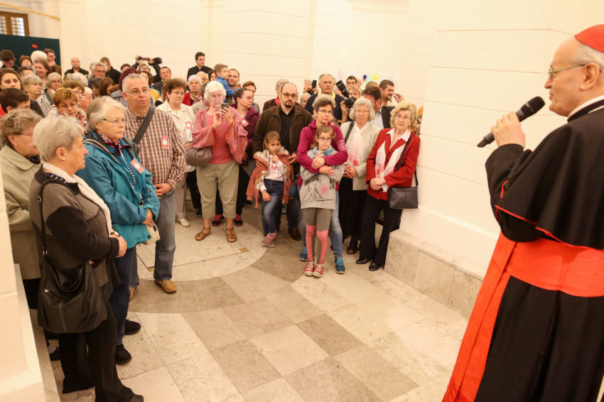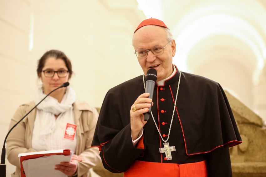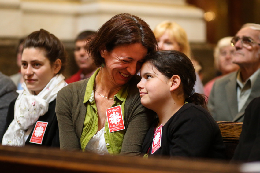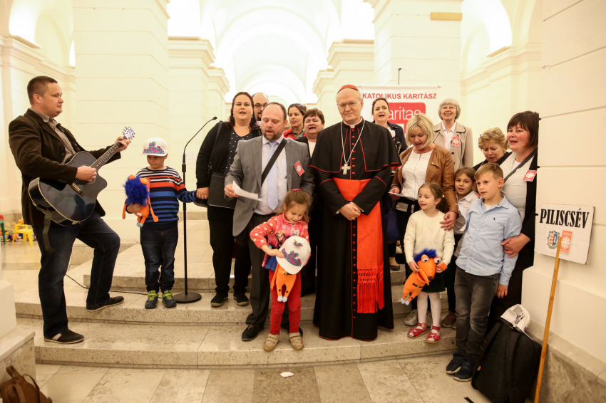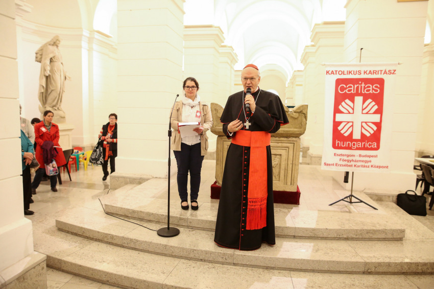 A szentmise után a Karitász Családi Ünnep résztvevőit az altemplomban elsőként Erdő Péter bíboros köszöntötte. Felidézte, hogy a 2017-ben elhunyt Joachim Meisner kölni bíboros vezette egyházmegye mennyi segítséget, karitatív szolgálatot végzett szerte a világban. Amikor a főpásztort megkérdezték, hogy milyen jellegűnek kell lennie ennek a munkának, milyen hatótávolságba kell elérnie, akkor mindig azt felelte, hogy arányosságra van szükség. Az igehirdető szavunk és a segítő kezünk egyforma távolságra kell hogy elérjen. Ha a szavunk hallatszik, de a segítő kezünkből semmi nem érzékelhető, akkor kevés lesz a hitele a szavunknak is. Ha pedig csak a tevékenység látszik, akkor olyanok vagyunk, mint bármelyik kormányközi civil szervezet. A keresztény karitász lényege tehát a Krisztus iránti szeretet megnyilvánulása embertársaink felé. Köszöntőjében Erdő Péter bíboros kiemelte: nagy öröm számára, hogy az Esztergom-Budapesti Főegyházmegye Karitásza körülbelül ugyanolyan távolra tudta elvinni a segítő szeretetet, mint amennyire az Egyház igehirdetése elért. A bíboros hangsúlyozta azt is, hogy az önkéntesek munkája tanúságtétel is egyben, de köszönet illeti a családtagokat is, hogy segítik, hozzájárulnak e tanúságtételhez.