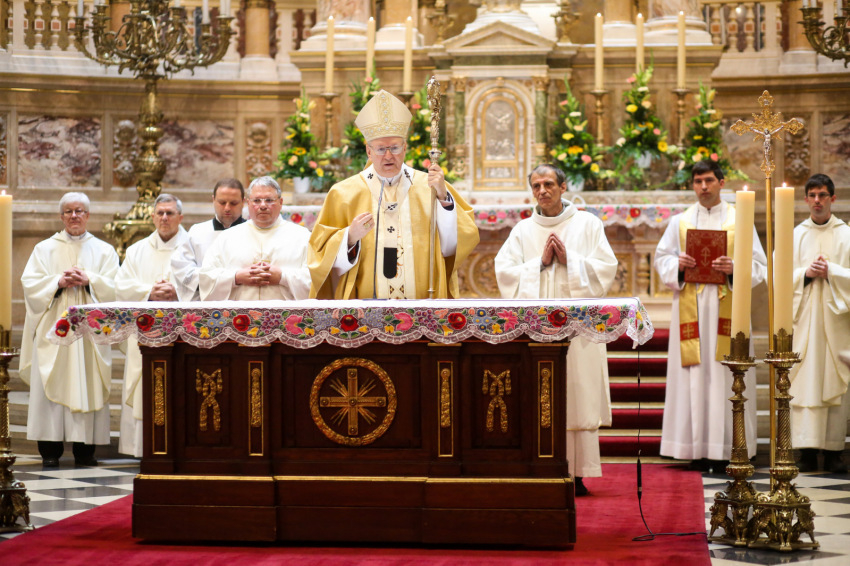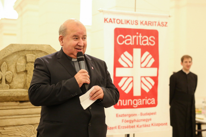Erdő Péter bíboros, prímás, az egyházmegye főpásztora homíliájában a szombati evangéliumi részhez kapcsolódva kiemelte, hogy Szent János evangéliumának felolvasott szakasza a tanítványoknak, sőt a kiválasztott apostoloknak a világhoz való viszonyát ábrázolja. Hozzátette, ma is időszerű, hogy bizalmat, reményt, értelmet vigyünk a világ csüggedtségébe; szeretetet a gyűlölködés, a bizalmatlanság helyett. A főpásztor hálát adott Istennek mindazért a kegyelemért, amit az Esztergom-Budapesti Főegyházmegye Karitászának munkatársai kaptak az elmúlt 25 évben. Hangsúlyozta: az Esztergomi Főegyházmegyei Zsinat eredménye volt, hogy újra tudatosítani lehetett a plébániai Karitász-csoportok értékét, ezért is volt fontos pillanat, amikor negyed évszázada jogi személyként megalakult a Szent Erzsébet Karitász Központ, amely az egész egyházmegye karitatív szervezete lett. A bíboros köszönetet mondott a diakonális szakterület korábbi és jelenlegi helynökének, Nagy Károly és Écsy Gábor atyának, minden dolgozónak és a Karitász önkénteseinek, akik önzetlen munkájukkal hitelessé teszik az egyházmegye egészének szolgálatát.
