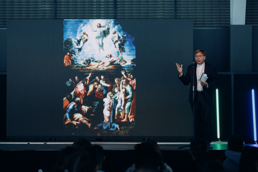 Fabiny Tamás evangélikus püspök beszédében Raffaello Krisztus színeváltozása című festményét hozta fel példának. Kiemelte, hogy a képen a hegy tetején a Jézussal történő csodát ünneplik a tanítványok, és fürdenek a dicsőség fényében, miközben a hegy lábánál a szegénységben élők épp a beteg gyermeket gyógyíttatnák, várnák a csodás gyógyítást.