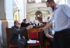 A zsinati napok eredményét, a zsinati dokumentumot az egyházmegye híveinek, animátorainak és bizottságtagjainak képviseletében, a munkabizottságok vezetőinek kíséretében Gyuris László püspöki helynök nyújtotta át Német László SVD püspöknek.