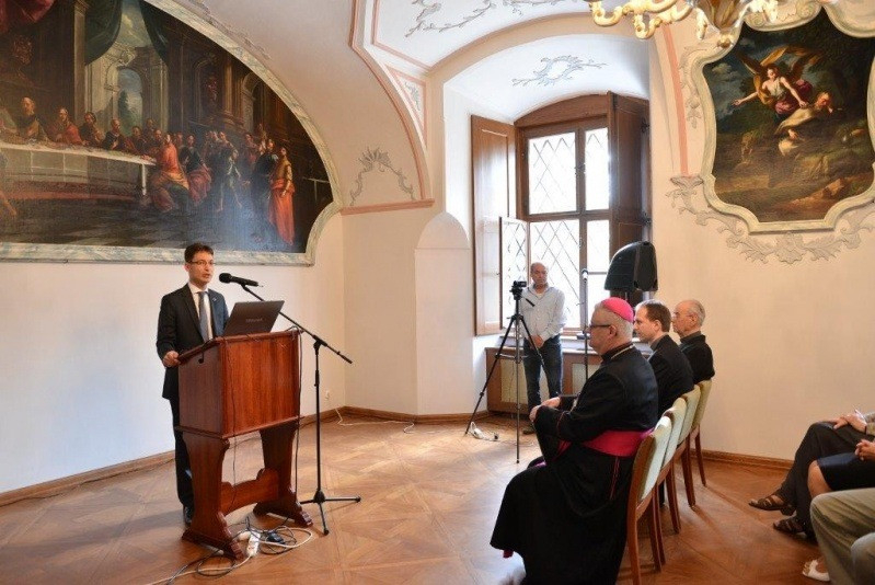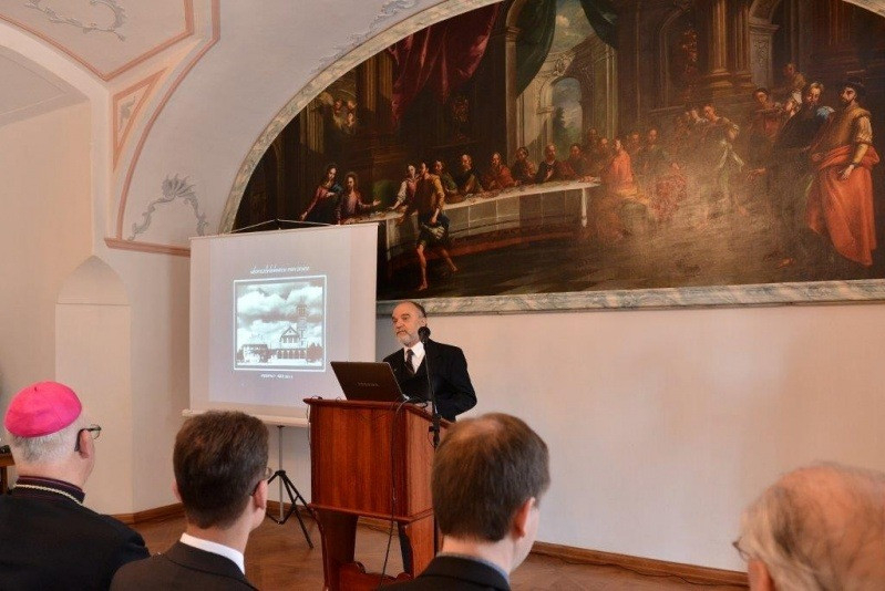 Mózessy Gergely gyűjteményigazgató, püspöki levéltáros az egykori karmelita rendház épületegyüttesének történeti funkcióváltozásait mutatta be. Előadásában ismertette, hogy a ház több történelmi fordulót vészelt át, és számos feladatot látott el: volt karmelitarendház, és hosszú évekig egyházmegyei szeminárium. Voltak köztes funkciói is, például katonai raktár, elemi iskola vagy menekültek átmeneti szállása. 1954 júniusa óta működik országos papi otthonként. Megalapításának közvetlen előzményei a szerzetesrendek működési engedélyének megvonásáig nyúlnak vissza. A szerzetes közösségek ugyanis hagyományosan gondozták, ápolták saját idős tagjaikat, a feloszlatással a gondoskodás e formái megszűntek. Ezt a nehézséget egy pannonhalmi, 1951-es alapítású, idős szerzeteseket befogadó otthon orvosolta, de az egyházmegyés papok számára nem volt hasonló intézet. Közben az egyházmegyéket a diktatúra újabb és újabb államosításokkal sújtotta, elvéve az idős papok gondozásának lehetőségeit is. Végül az Állami Egyházügyi Hivatal megértette azt a szándékot, amelyet szeretetszolgálat akkori igazgatója, Szörényi Gábor és a püspöki kar egyetlen hivatalában levő érseke, Czapik Gyula tolmácsolt. Így 1954-ben – a megelőző három évben katonai tiszti szállóként funkcionáló – volt szemináriumban rendezhették be az idős papok országos otthonát.