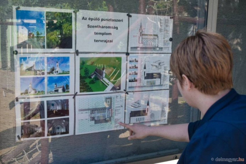 Pusztaszer 1934-ben vált önálló településsé. Egykor kijelölték a templom helyét, ám később beépítették a telket – emlékeztetett Máté Gábor polgármester a május 7-i ünnepségen. A településen élők régóta szerettek volna katolikus templomot. Ezt többek között azzal is kifejezésre juttatták, hogy 2012 óta lovas zarándoklatokat szerveztek Pálosszentkútra, és kopjafát állítottak, amelyre minden évben újabb rovátkát véstek, egészen a tavaly június 24-én tartott alapkőletételig. Hogy felépülhessen a Szentháromság-templom, a Szeged-Csanádi Egyházmegye és Pusztaszer önkormányzata telket cserélt. A munkálatokat a kormány is támogatja anyagilag.