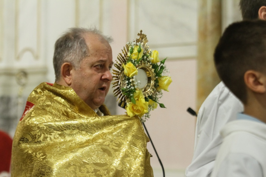 „Ezen a napon köszöntjük hitünk nagy titkát, a kenyér és bor színében köztünk maradt Krisztust, aki által Isten mindent meg akar újítani” – hangsúlyozta beszédében a főpásztor. – Elnyeréséhez azonban hinni kell Jézusban. Annak, aki nem tud hinni, szükségszerűen érthetetlenek maradnak az ő szavai. A Jézusba vetett hit felismeréséhez kegyelemre van szükségünk. Meg kell vizsgálnunk tehát, hogy a mi életünkben ott él-e a kegyelem, milyen helyet foglal el az Oltáriszentség.