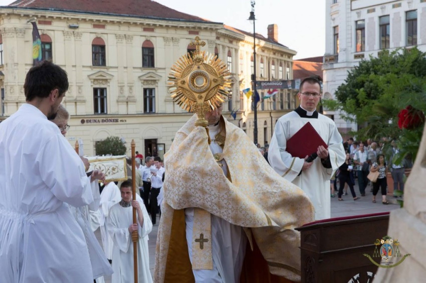 Udvardy György pécsi megyéspüspök ünnepi szentmisét celebrált a pécsi székesegyházban úrnapján; majd körmenet indult Pécs belvárosában a Szentháromság-szoborhoz. A szentmise a Gyertyaszentelő Boldogasszony-templomban (Gázi Kászim pasa egykori dzsámija) ért véget.