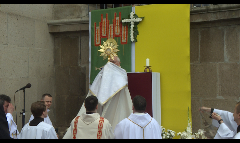 A főpásztor homíliájában elmondta, a legkatolikusabb ünnepet tartjuk ma: úrnapját, melyen Jézus Krisztus Testét és Vérét ünnepeljük, melyet kiviszünk a világ színe elé is. Annak a hittartalomnak a következetes végigvitele ez, hogy ha egyszer Jézus Krisztus azt mondta, hogy ez az én testem, ez az én vérem, akkor ő az, és ezt nem lehet másként érteni.