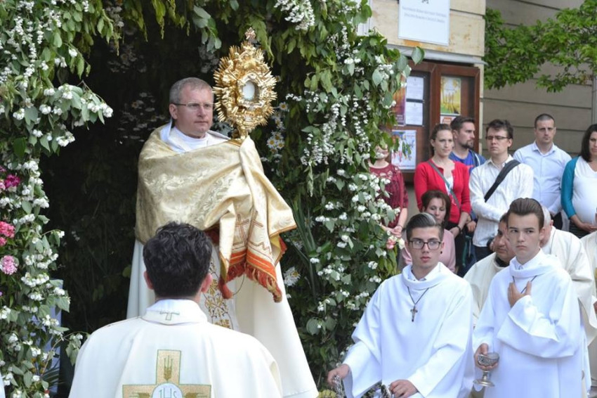 Úrnapkor kivisszük az Oltáriszentséget a terekre művészi alkotásnak számító monstranciákban, amelyeken minden ragyog. A lényeg azonban az Oltáriszentség maga, a sugár nem a szentségmutatóból jön, hanem magától Jézustól. Hagyjuk, hogy ez a sugár érintsen meg minket mindennap, és vigyük el másokhoz is az örömet, a békét – bíztatta végül a híveket az egyházmegye elöljárója.