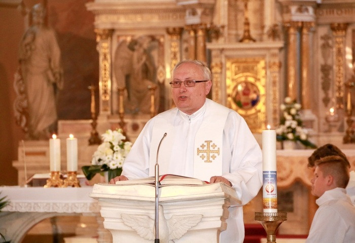 A püspök arról is beszélt, hogy az egyház születését pünküsdkor ünnepeljük, de megalapozása az utolsó vacsora termében történt meg Jézus szavai által: „Ez az én testem, ez az én vérem. Ezt tegyétek az én emlékezetemre.” Az Oltáriszentségben jelenlevő Jézus az építő, mi pedig a formátlanul kezébe kerülő kövek vagyunk. Ő az alap. Az Oltáriszentségben ezzel a Jézussal találkozunk, aki életünk építője, alakítója, alapja. A szentségi Jézussal való találkozásból merítsünk örömet, bátorságot, erőt.