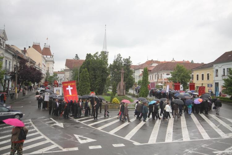 A szentmisét követően úrnapi körmenetet tartottak a püspöki palota kertjében. Az ünnepélyesen feldíszített, hagyományos négy sátrat az Erdélyi Mária Rádió munkatársai, a Háló Egyesület munkatársai, a Nőszövetség tagjai, valamint a Szent László Iskola tanárai és diákjai készítették.