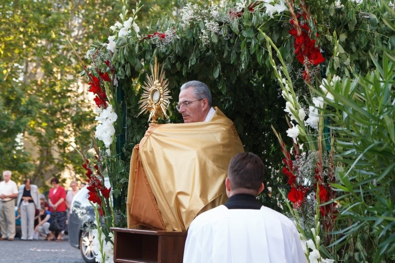 A szentmisét követően került sor a körmenetre. Az oltárokat az oladiak, a ferences templom közössége, a szőllősi Jézus Szíve plébánia tagjai és a székesegyháziak díszítették fel.