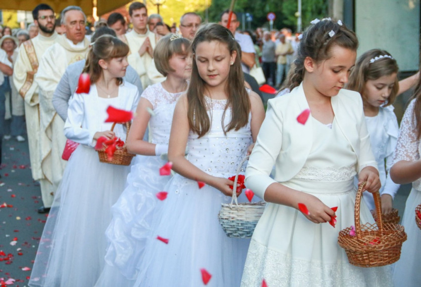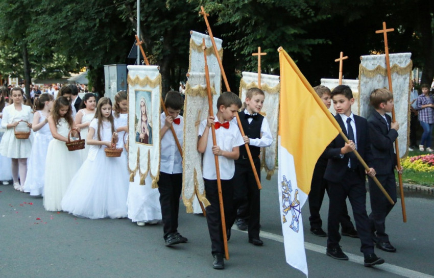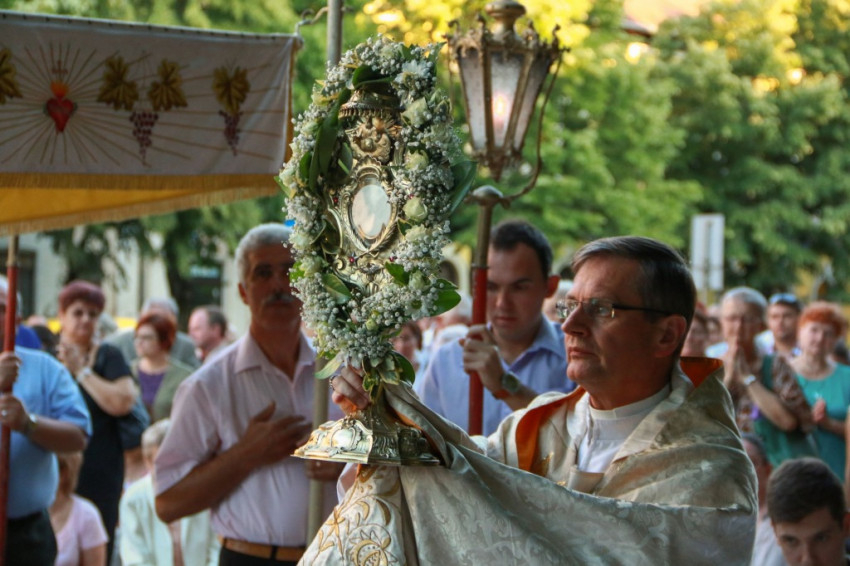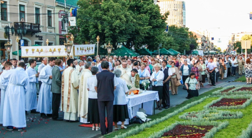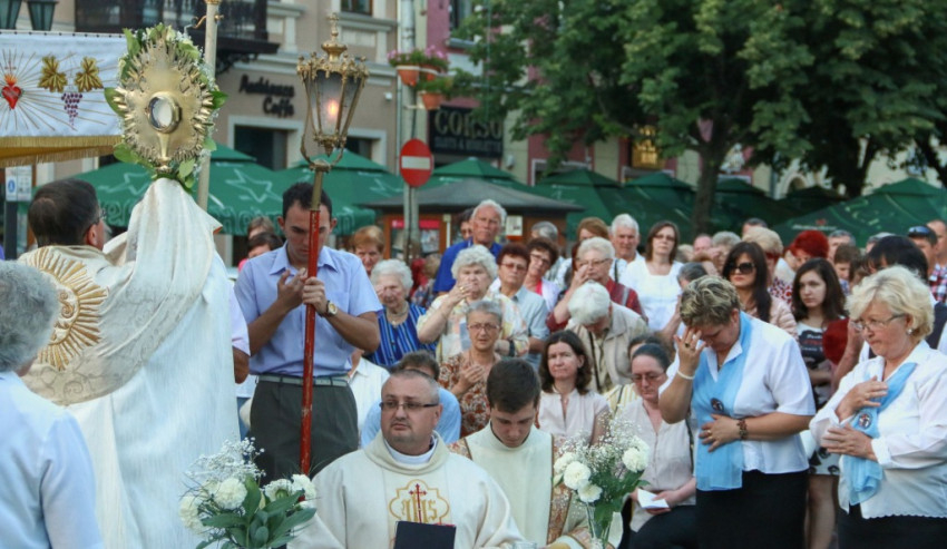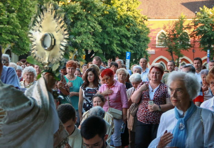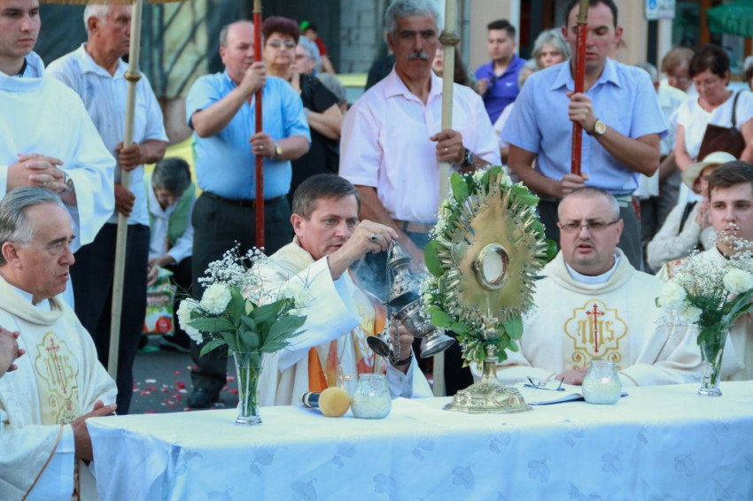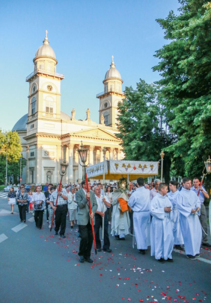 Miután az áldozásban a hívek magukhoz vették Krisztus testét, Schönberger Jenő püspök kivitte az Oltáriszentséget a székesegyházból, és a jelen lévő papokkal, hívekkel körmenetet tartott – a régi központ parkját kerülték meg, a négy pontnál elhelyezett oltároknál megállva, evangéliumot olvasva és imádkozva. Ezzel megmutatta az Oltáriszentséget a világnak, a hívek tanúságtétele közben megáldotta az egész várost. A záróáldást is a székesegyház bejáratától, a Te Deum és a litániák elmondása után adta a püspök.