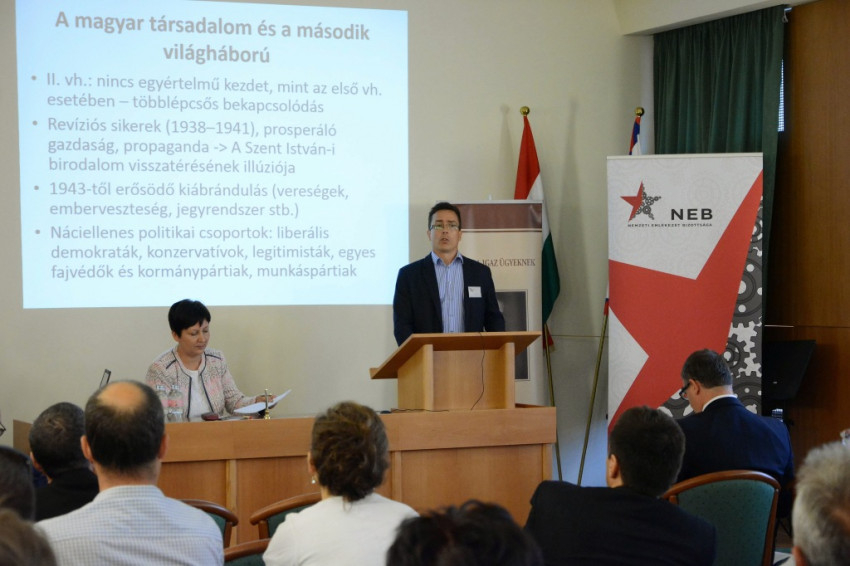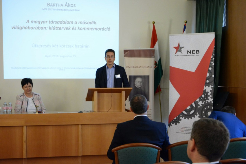 Az egész napos konferencia előadói négy szekcióban hallgathattak előadásokat a II. világháború utolsó éveiben, illetve az azt követő időszak és a kialakuló egypártrendszer idején zajló folyamatokról, a katolikus sajtó helyzetétől a keresztény értékeket követő politikusok útkeresésén át a szociálisan érzékeny papok, püspökök egyházi vezetők megnyilvánulásain keresztül egészen az emigrációba kényszerült, vagy kényszerített papok munkájáról, út- és kiútkereséséről. Előadásokat lehetett hallani például az 1943-as győri konferencia tágabb történeti és egyháztörténeti hátteréről. Bartha Ákos, az MTA Bölcsészettudományi Kutatóközpontjának Történettudományi Intézetének posztdoktor kutatója A magyar társadalom a második világháborúban kiúttervek és kommemoráció címmel tartotta meg előadását. Ebben többek közt azt bizonyította be, hogy a Horty-korszak politikai életét a későbbi idők gyakorlatához képest sokkal jobban meghatározta a személyes hálók kapcsolata, a múltbeli kötődések, valamint a titkos, vagy féltitkos szervezetek és gyűlések, melyek írott források által csak igen nehezen fejthetők föl. Emellett arra is rávilágított az előadó, hogy az antifasizmus politikai célok mentén felépített fogalmát jó volna, időszerű volna a politikatörténeti leíró kategóriák közül az eszmetörténet tárházába helyezni, mivel a náciellenesség sokkal sokszínűbb volt Magyarországon, tehát nem helyes egyetlen csoport alapján értelmezni azt, kritikátlanul átvéve az ő fogalomkészletüket.
