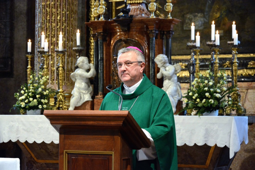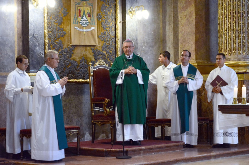 Homíliájában a főpásztor kiemelte, hogy hasonlóan a szentmise szövegeiben hallottakhoz, a konferenciának is az volt a célja, hogy egy lépést tegyünk Isten országának építésében. Másrészt ezt Isten felé kérésként is szeretnénk megfogalmazni: adja meg nekünk az egységet, közös akaratot az ő követésében, hiszen e nélkül nem lehetséges országának építése. Abban, hogy egy akarattal tudjuk mindezt megtenni Krisztus segítséget ad nekünk – mondta Veres András püspök, majd így folytatta: kiválasztotta az Egyház vezetőjét, hogy őt hallgatva, őt kövessük. De elküldte nekünk a Szentlelket is, hogy megérthessük az evangéliumot. Megalkotta az Egyházat, hogy második eljöveteléig az embereket az üdvösség felé vezesse és őrizze a hit, a kinyilatkoztatás tisztaságát. Veres András püspök arról is szólt, hogy bizonyára sokan elgondolkodtak már a keresztények közti megosztottság drámáján is, mely sokakat tántoríthat el a hittől, sokakat bizonytalansággal tölthet el.
