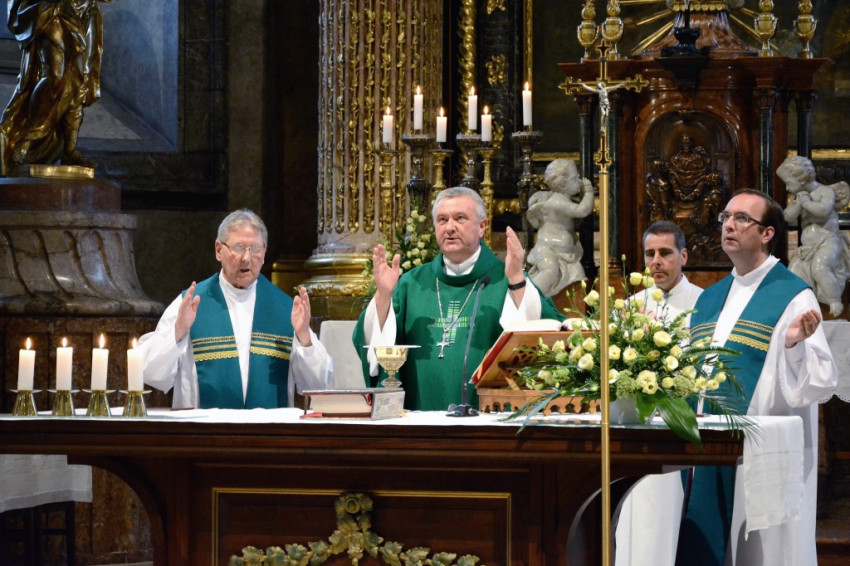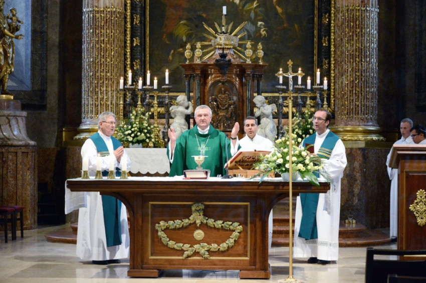 A konferencia délután a székesegyházban Veres András főcelebrálásával bemutatott szentmisével zárult. A vendéglátó főpásztor a szentmise elején reményének adott hangot, hogy a konferencia résztvevői a jól végzett szellemi munka örömének is hálát adhatnak a szentmisében, illetve a megyéspüspök köszöntötte az Ásványráróról érkezett nagyszámú zarándokcsoportot is.