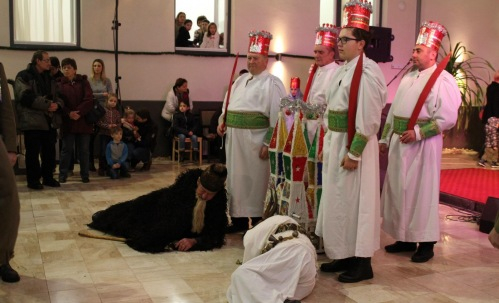 Egy meglepetéscsoport is ellátogatott a programra: Debrecenben ugyanis ugyanekkor rendezték meg a nemzetközi betlehemestalálkozót. Az érseki hivatalban fellépett a szatmári térség betlehemescsapata, Szemák Miklós parókussal az élén.