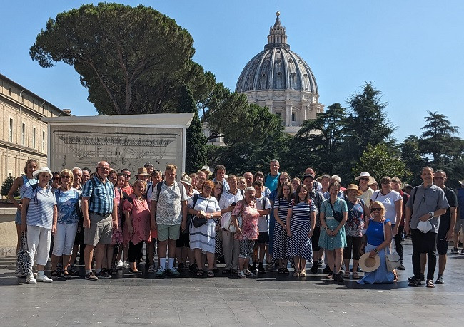 Július 31-én kora hajnalban keltünk fel, hogy a Búza téri székesegyházban Szemerszki Mihály parókus atya áldását fogadva útra keljen az ötvenöt zarándok Péter és Pál apostol sírja felé. Az első nap az utazással és az ismerkedéssel telt, melynek végén a megérdemelt pihenés várt minket Montecatini városában. Ilyenkor jön rá az ember, hogy tizenhat óra egy helyben ülésbe is igencsak bele lehet fáradni. Szerencsére a test fáradását ellensúlyozták az imaórák, melyeket közösen imádkoztunk utunk során.