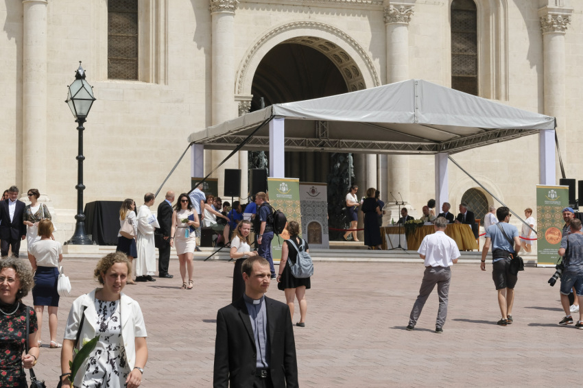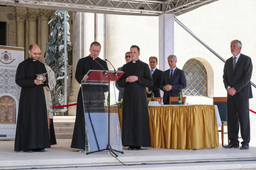 A közel hatszázmilliós, főként kormányzati támogatással megvalósult beruházás átadásán Udvardy György püspök a templom előtti tér – magyarra fordítva ez a pogányok udvara – jelentéséről beszélt.