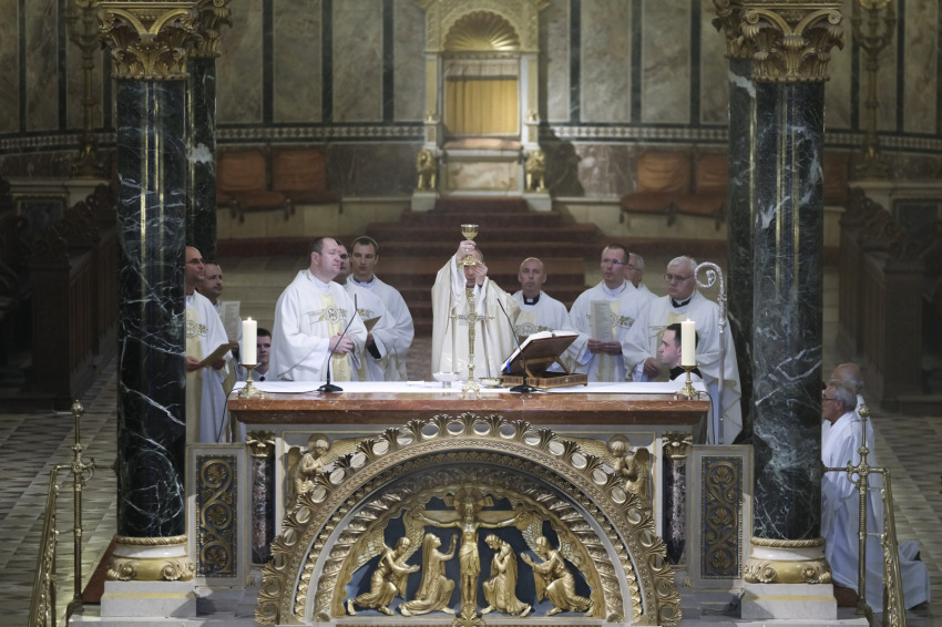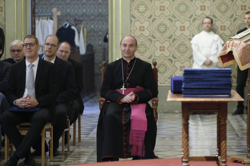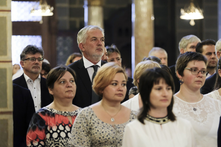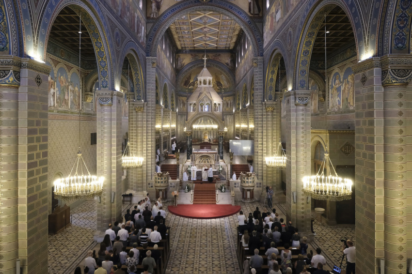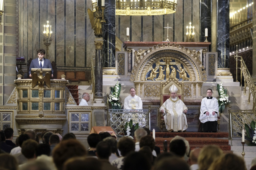 Végül a főpásztor újra megfogalmazta a kiinduló kérdést, Jézus kérdését: Ti kinek tartotok engem? „Hisszük, hogy megismerve a teremtett világ gyönyörűségét, felhasználva az időt, amit kapunk, megvalljuk, te vagy a Krisztus, az élő Isten fia, a mi utunk, igazságunk, szentségünk, erősségünk, tervünk, jövőnk, bátorságunk. Hisszük, hogy a mai ünnep is segíti, hogy jó választ adjunk életünk bármelyik pillanatában, amikor Jézus felénk fordul kérdésével. Megerősít bennünket ebben a válaszban Isten szent hajléka, azok a terek, amelyeket az ember megszentelni képes a maga tudásával, szentségre törekvésével, és segítenek bennünket megszerzett ismereteink. Így megvallhatjuk: te vagy Krisztus, az élő Isten Fia.”