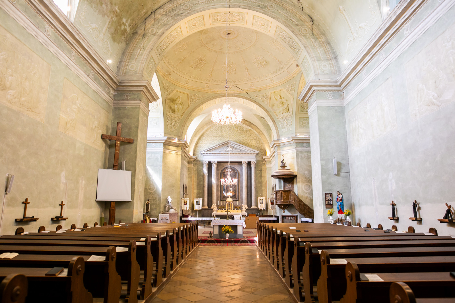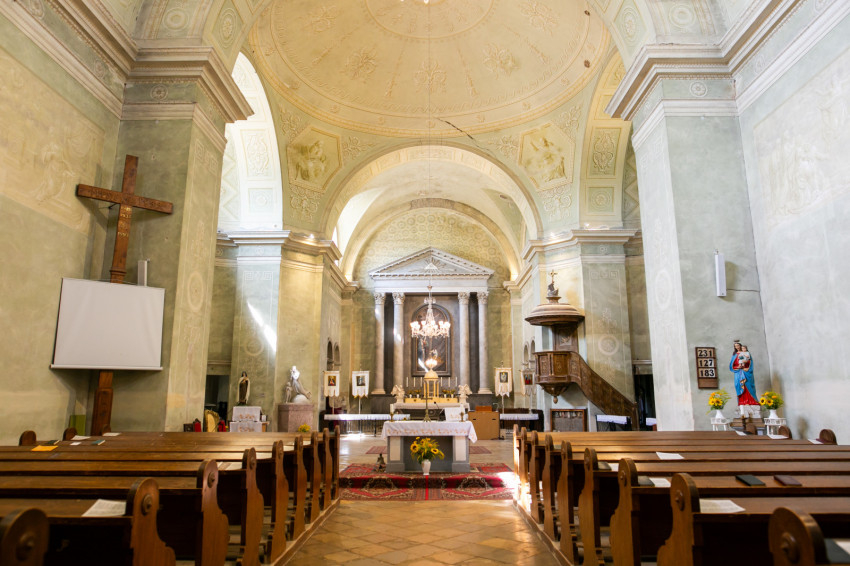 Miközben áthaladunk a Váli-víznek nevezett patakon átívelő míves téglahídon, feltűnik a magaslatra épült katolikus templom négy hatalmas oszlopával, timpanonos klasszicista homlokzatával. Kétszáz éves a Hétfájdalmú Szűzről elnevezett templom; a plébániai képviselő-testület, az önkormányzat és a helyi faluvédő egyesület szervezésében a jubileumot az egyházközösséggel együtt ünnepli az egész falu.