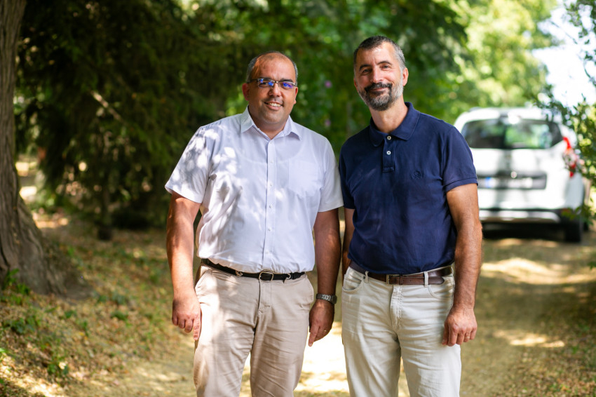 A templom körül éppen munkálatok folynak, a hétvégi ünnepre rendezik a ligetes területet. Bechtold Tamás polgármester és Ruff Tamás, a plébániai képviselő-testület elnöke, lelkipásztori munkatárs fogad minket. Kovács Zoltán martonvásári plébános, aki Vállal együtt összesen nyolc településen szolgál, akadályoztatása miatt nem tudott eljönni a beszélgetésre. A vendéglátók mind az Egyház, mind a település iránt elkötelezett lokálpatriótákként álltak a jubileum megszervezésének élére.
