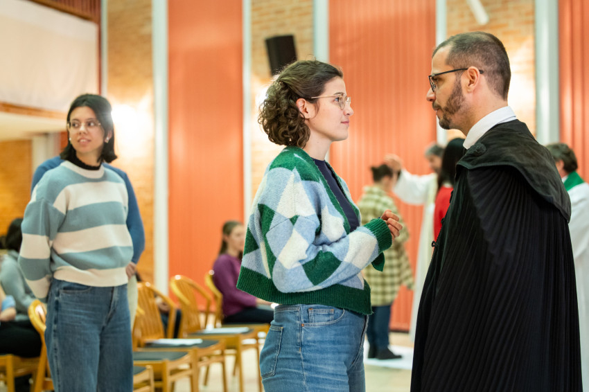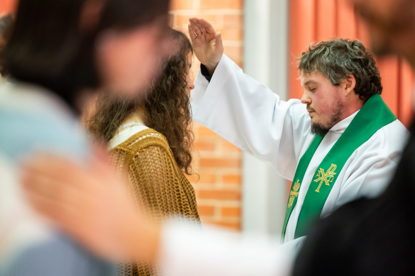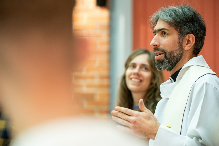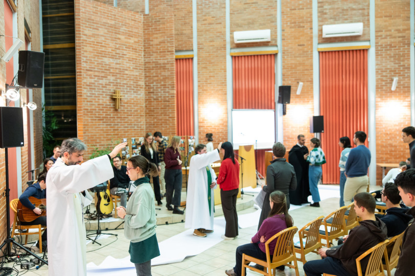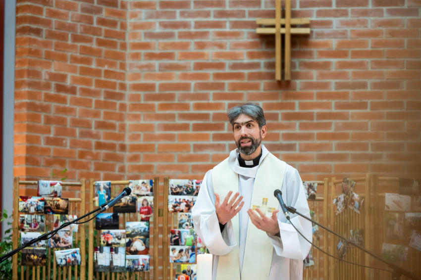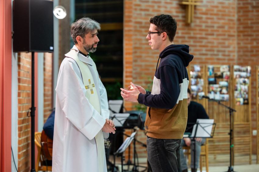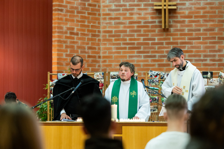 „Az előbb láttuk, milyen helyzetbe kerültünk mi, emberek a saját erőnkből, de most azt nézzük meg, Istennek mi a válaszlépése erre, hogyan változtatja meg ezt a helyzetet” – mondta, majd a fiatalokat arra kérte, hogy egy nagy kört alkossanak a kápolnában.