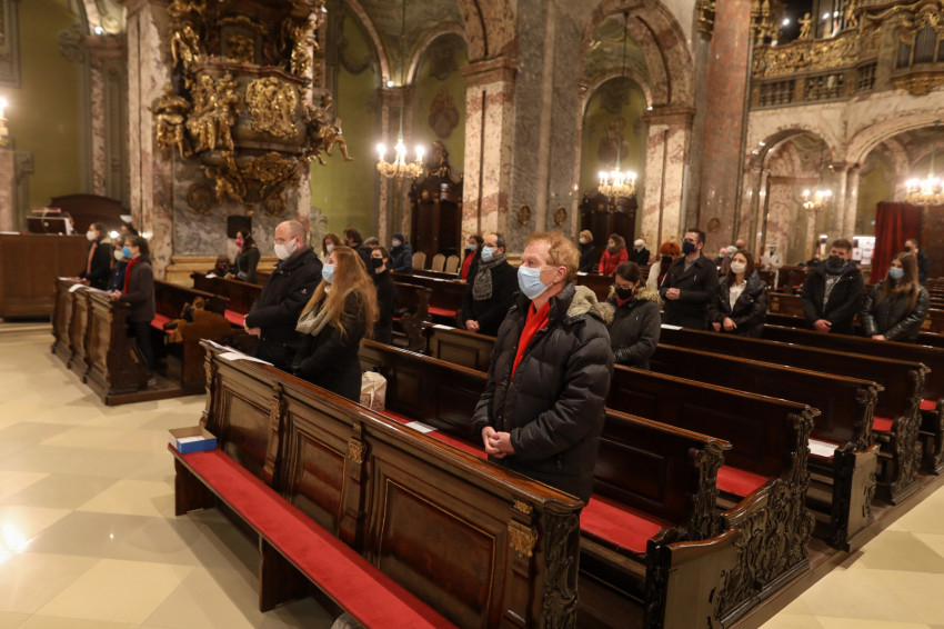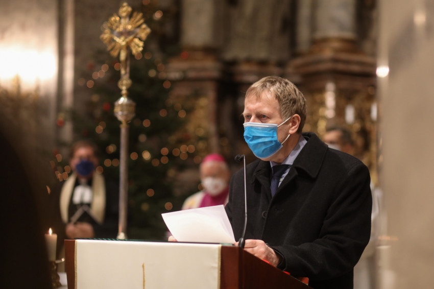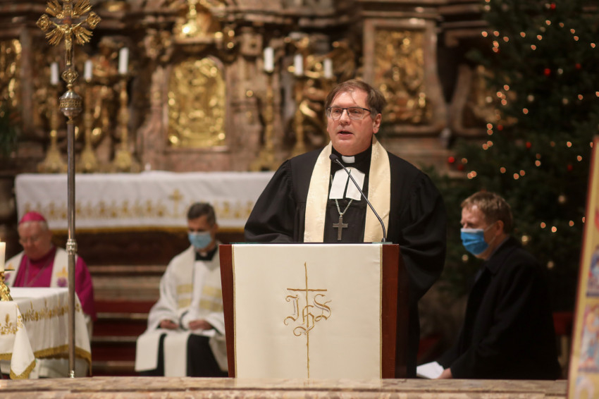 Sokszor emlegetjük, hogy szörnyű esztendő van mögöttünk – vezette be imádságát Fabiny Tamás evangélikus püspök. – Nem tudjuk, Isten mit tartogat számunkra, de bízunk és imádkozunk azért, hogy megvalósuljon Jézus szava, amit a názáreti zsinagógában olvasott fel a tekercsből, Izajás könyvéből: örömhírt hirdetek a szegényeknek, a foglyoknak szabadulást, a vakoknak látást… „és hirdetem az Úr kegyelmének esztendejét”. Azért imádkozunk, hogy az előttünk álló esztendő ne „annus horribilis”, szörnyű év, hanem az Úr kegyelmének esztendeje legyen. És hogy a mi szívünkben és reményeink szerint a világban is ölelje át egymást az igazság és a béke, ahogyan a 85. zsoltár szavaival korábban imádkoztuk. Mert ahogyan a béke világnapi üzenet is mondja, igazságosság nélkül nincs béke és béke nélkül nincs igazságosság. A kettő elválaszthatatlan.