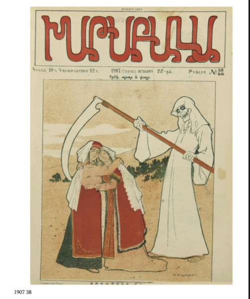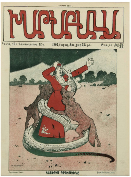 Kristine Baghdasaryan 19. századi, Tbilisziben kiadott folyóiratok karikatúráin keresztül mutatta be a nacionalizmus, a politikai szatíra és a vizuális propaganda közötti kapcsolatokat Anderson, Foucault és Gellner elméleteire támaszkodva.