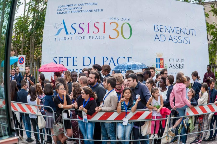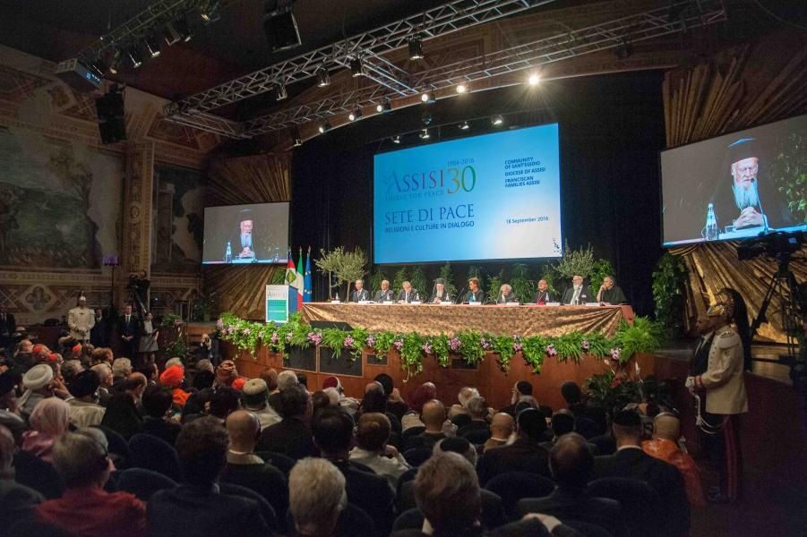 Miután Domenico Sorrentino, Assisi érseke és Catiuscia Marini, Umbria tartományi elnöke köszöntötték a vendégeket és a résztvevőket, Andrea Riccardi egyháztörténész emlékeztetett rá, hogy harminc évvel ezelőtt II. János Pál pápa kezdeményezése újdonság volt. Történelmi jelentőségűvé vált 1986. október 26-a, amikor a nagy vallások vezetői összegyűltek Assisiben, a találkozás új formáját megélve. Egy modern ikon: békésen egymás mellett imádkozó vallási vezetők, sokféle hagyományos, színes ruhában – a dialógus esztétikája. Megmutatta, hogy lehetséges a párbeszéd. Assisi a vallási hagyományok mélységét tárta fel, leomlottak a történelmi ellenségeskedés falai. Ez a gesztus felébresztette sok ember reményét. Voltak, akik megbotránkoztak, szerintük feladjuk önmagunkat. Bolondság – mondták mások. Nem bolondság volt, hanem prófécia, lüktetett benne a történelem – hangsúlyozta Riccardi. A béke műhelye várja a munkásait – idézte II. János Pált, és elmondta, a Szent Egyed közösség meghallotta a pápa hívását, folytatta a munkát ebben a műhelyben. Harminc éven át folyamatosan megrendezték a találkozókat. Növekedtek a béke energiái, a kapcsolatok vallási közösségek, kultúrák között.