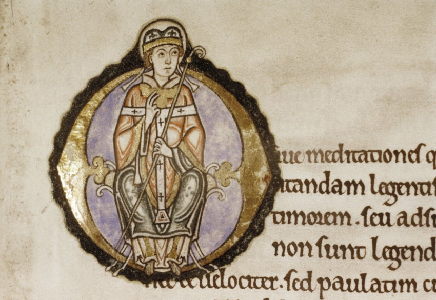 Fotó: Wikipédia (Illusztráció egy 12. századi, Canterburyi Szent Anzelm elmélkedéseit tartalmazó kéziratból); portré: Merényi Zita