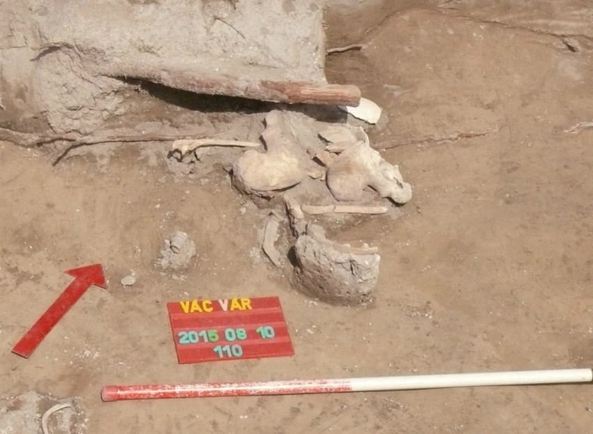 A 110-es objektumként feltárt gödör mérete alapján egy kővel kialakított falú temetkezésnek vélhető, bár a kőkeretet elbontották valamikor, legalábbis a feltárt szerszámnyomok erre utalnak. A ferencesek a 18. századi Historia Domusban feljegyezték, hogy az új székesegyház építése során a középkori templomban több keresztet, selyemruha-maradványokat és egyéb mellékleteket tartalmazó főpapi temetkezést találtak. A sírok kőanyagát kitermelték a még folyamatban lévő építkezéshez, így valószínűleg ők a sírkamra szétbontói – egészítette ki mondandóját a kutató.