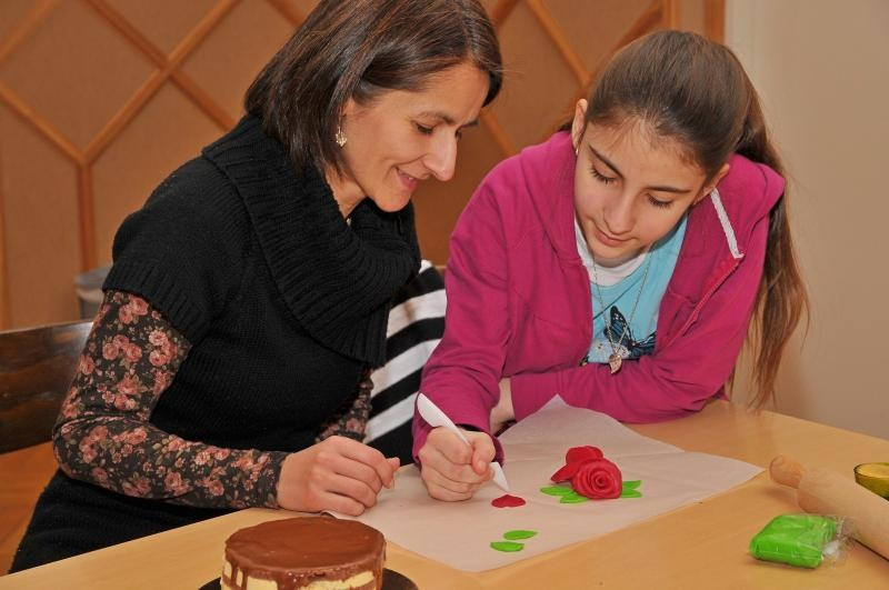Szombat délután közös alkotás következett: minden pár választhatott egy előkészített tortát, melynek díszítéséhez sokféle eszköz és kellék állt a rendelkezésükre. Az esti vetélkedő során sok vidám, játékos, olykor gondolkodtató feladatot kellett megoldani anyáknak és lányaiknak együtt.