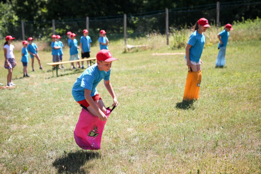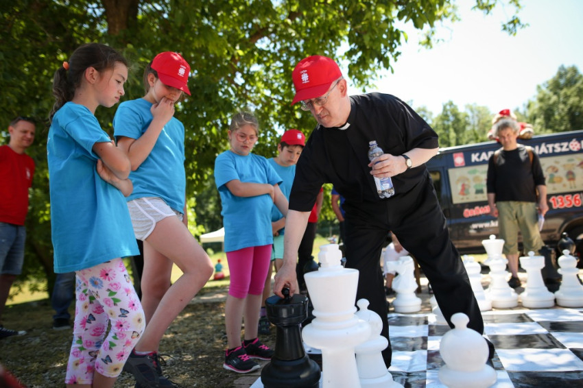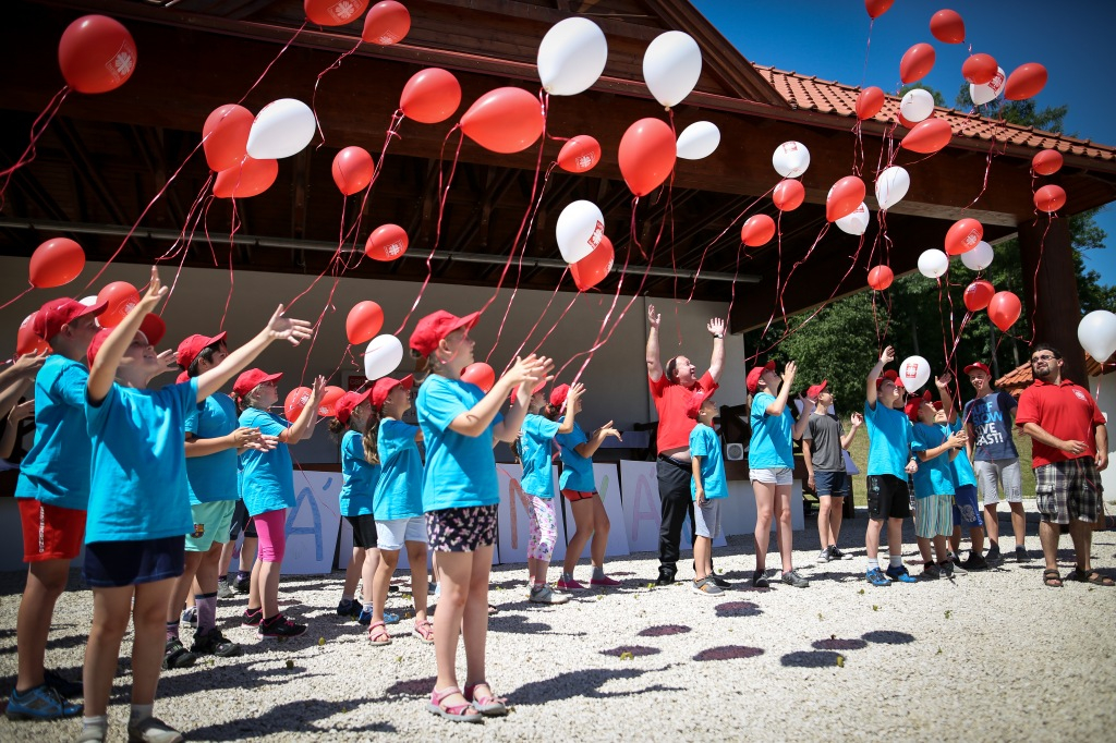 Écsy Gábor országos igazgató sorra veszi, hány meg hány féle tábort (vándor-, napközis, sátor-, kézműves-, hittan-, hagyományőrző) tábort szervez, támogat a Katolikus Karitász. „És mindegyikben ti, gyerekek vagytok a középpontban; az, hogy ti maradandó élményekkel gazdagodjatok a nyáron” – teszi hozzá, majd a nap legnagyobb eseménye, körülbelül száz lufi felengedése következik. „Vár a nyár!” – kiáltja Écsy Gábor maga is gyermeki örömmel, és amint a lufik nagy boldogan az ég felé röppennek, mindannyian átérezzük a pillanat ünnepélyességét. Kitört a vakáció.