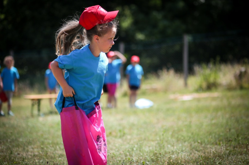 Sorverseny következik macikerüléssel, zsákban futással, gumilabdaként pattogó és botladozó, el-eltanyázó gyerekekkel, aztán tollasütőn kell labdát egyensúlyozni, és hármas gyepsíelés a záró feladat. Az utóbbihoz nagyon összhangban kellene lenni a versenyzőknek, és előbb meg kellene tanulniuk, egyáltalán hogyan lehet elindulni, aztán nem elesni, senkit sem a „harctéren” hagyni. Ez nemigen megy, és forróság van, ezért a pihenő kihirdetése után már nem folytatódik a verseny. Tanulság: talán nincs is komolyabb, embert próbálóbb, az életre jobban felkészítő tevékenység, mint a játék.